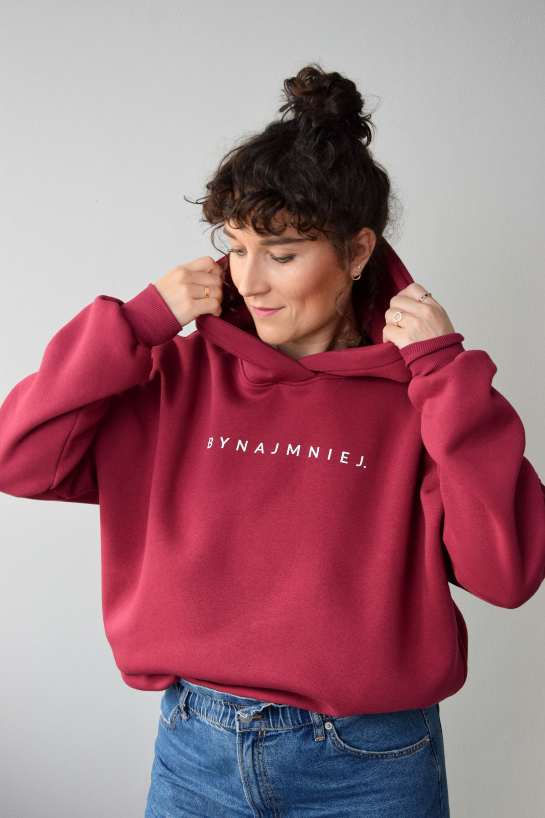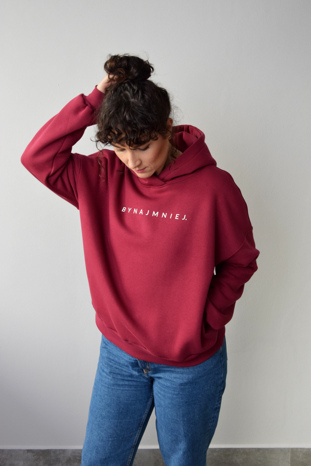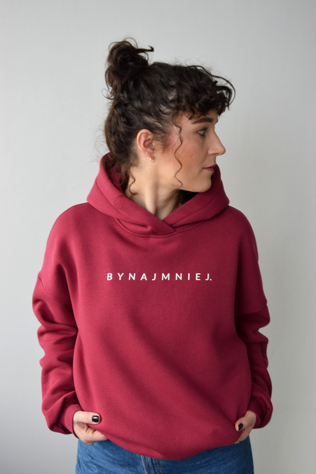 Bluza HOODIE bordowa BYNAJMNIEJ.