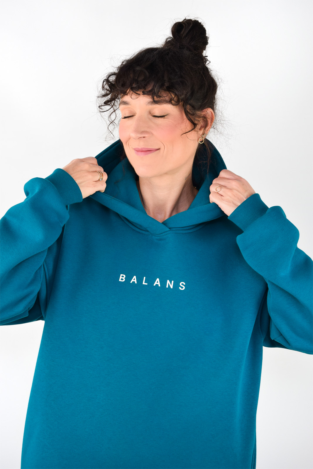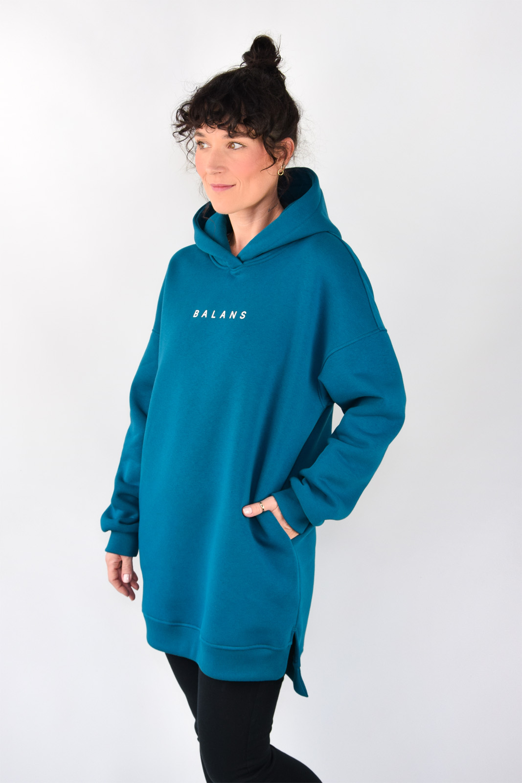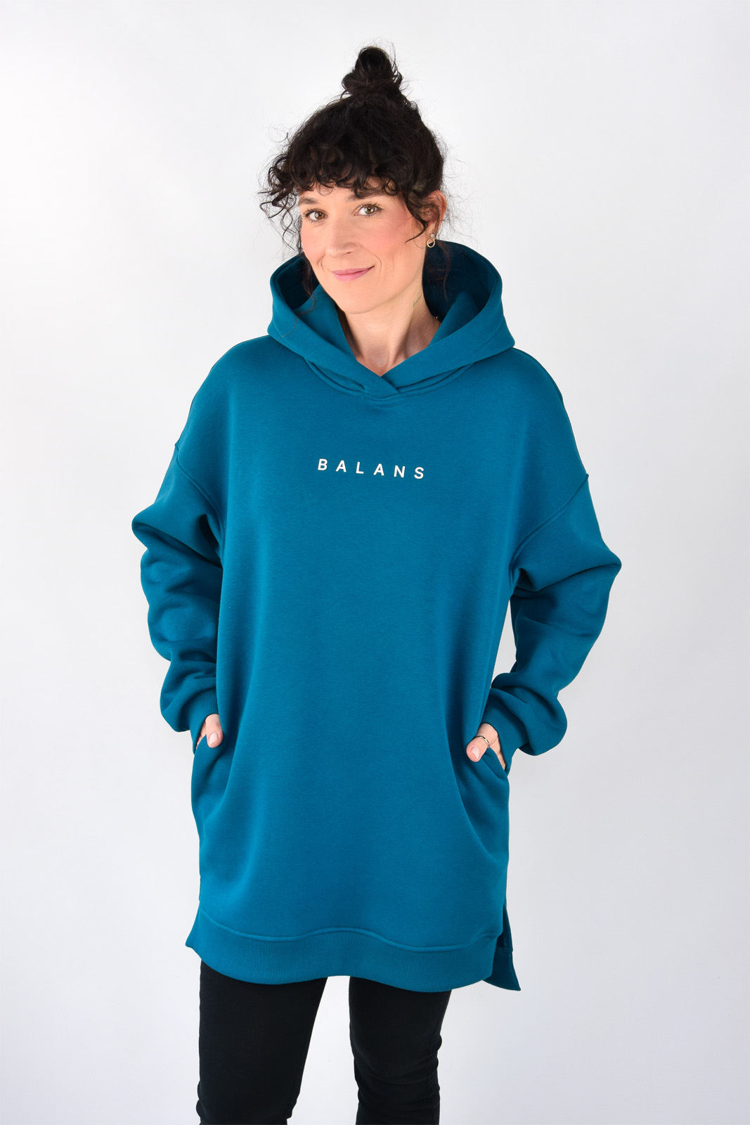 Długa, ciepła bluza long szafir BALANS o luźnym, oversize’owym kroju.