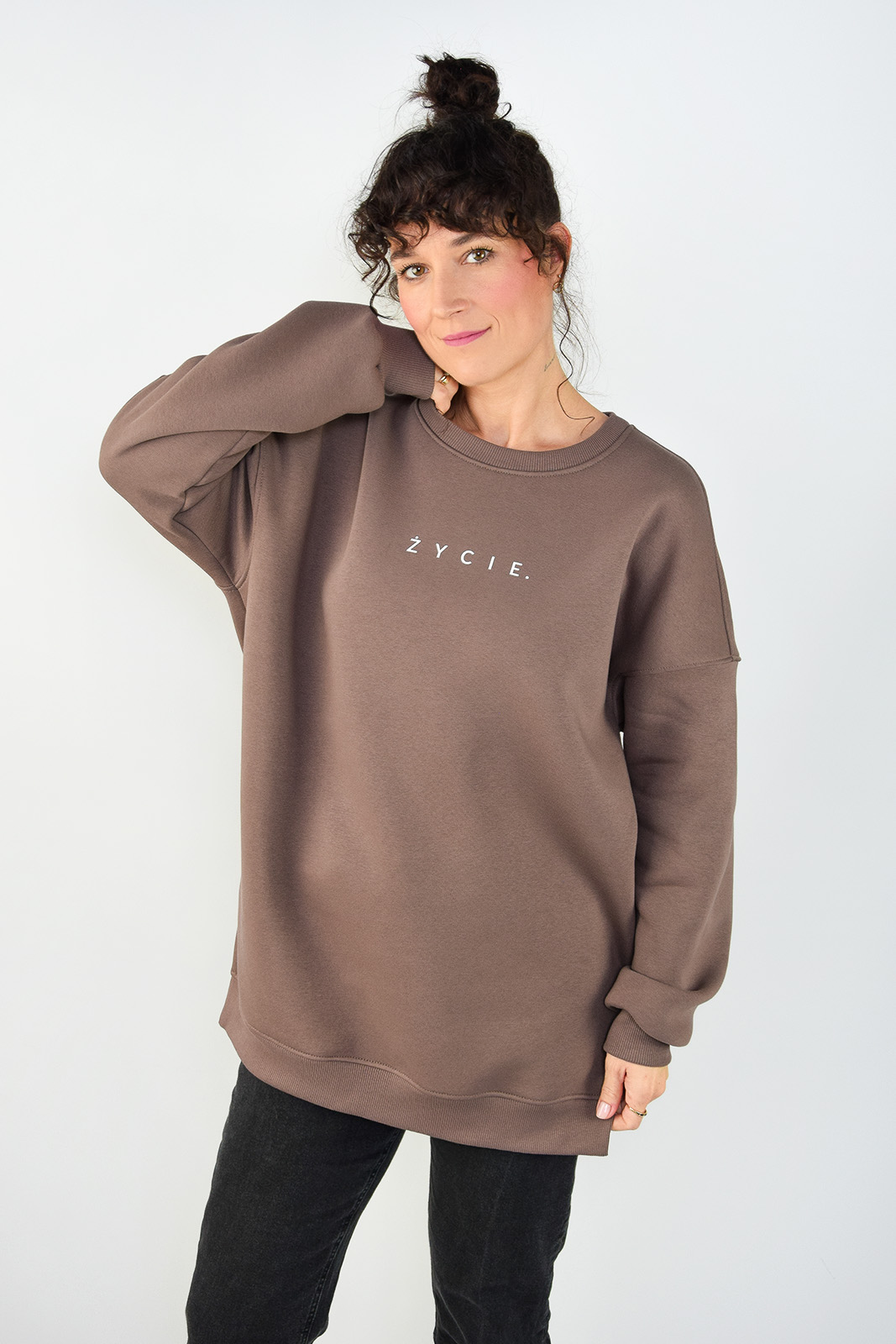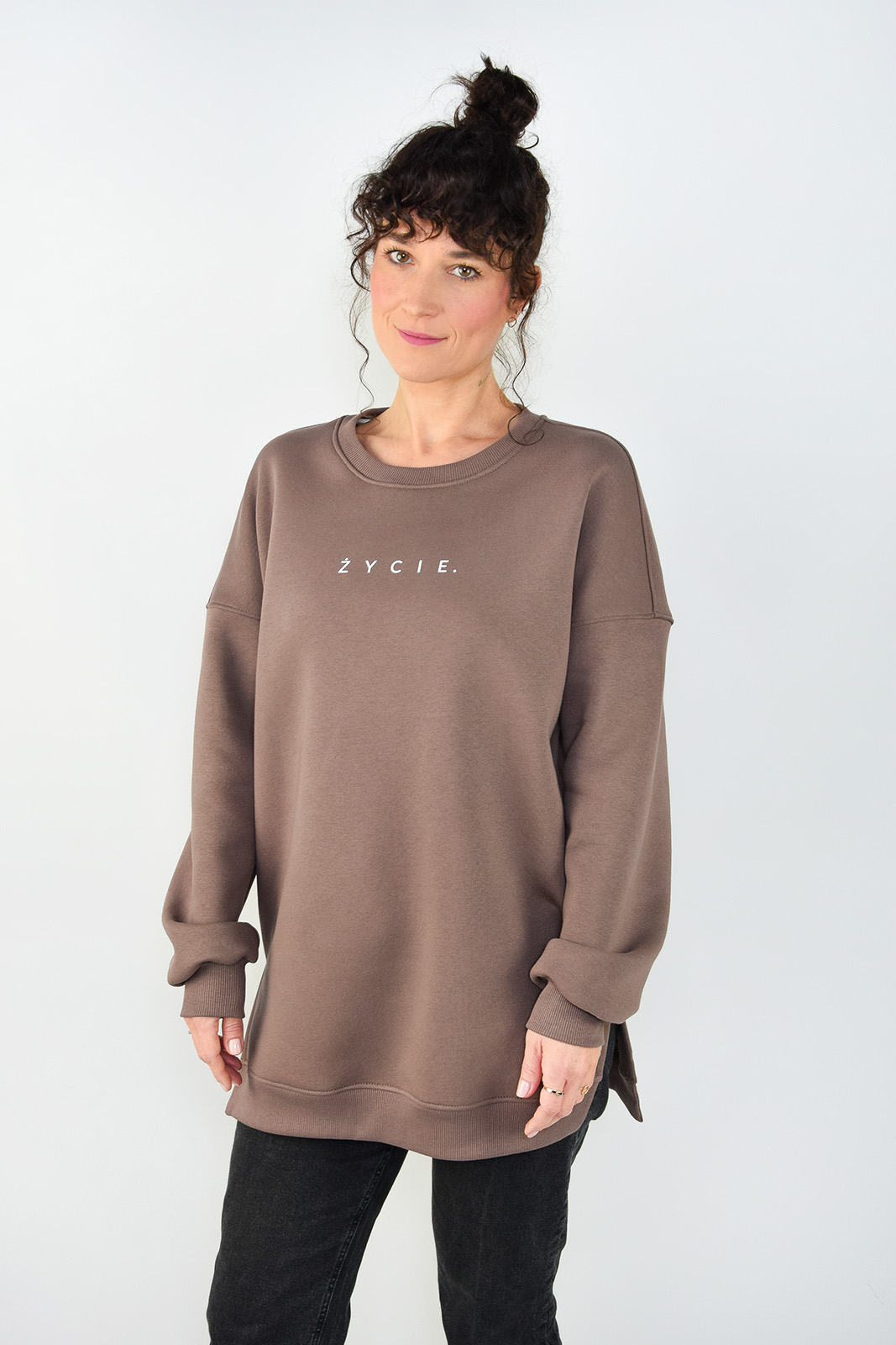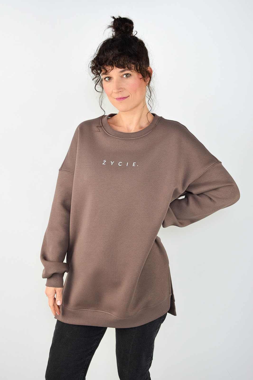 Typowo oversize’owa, długa i ciepła bluza o bardzo luźnym kroju.