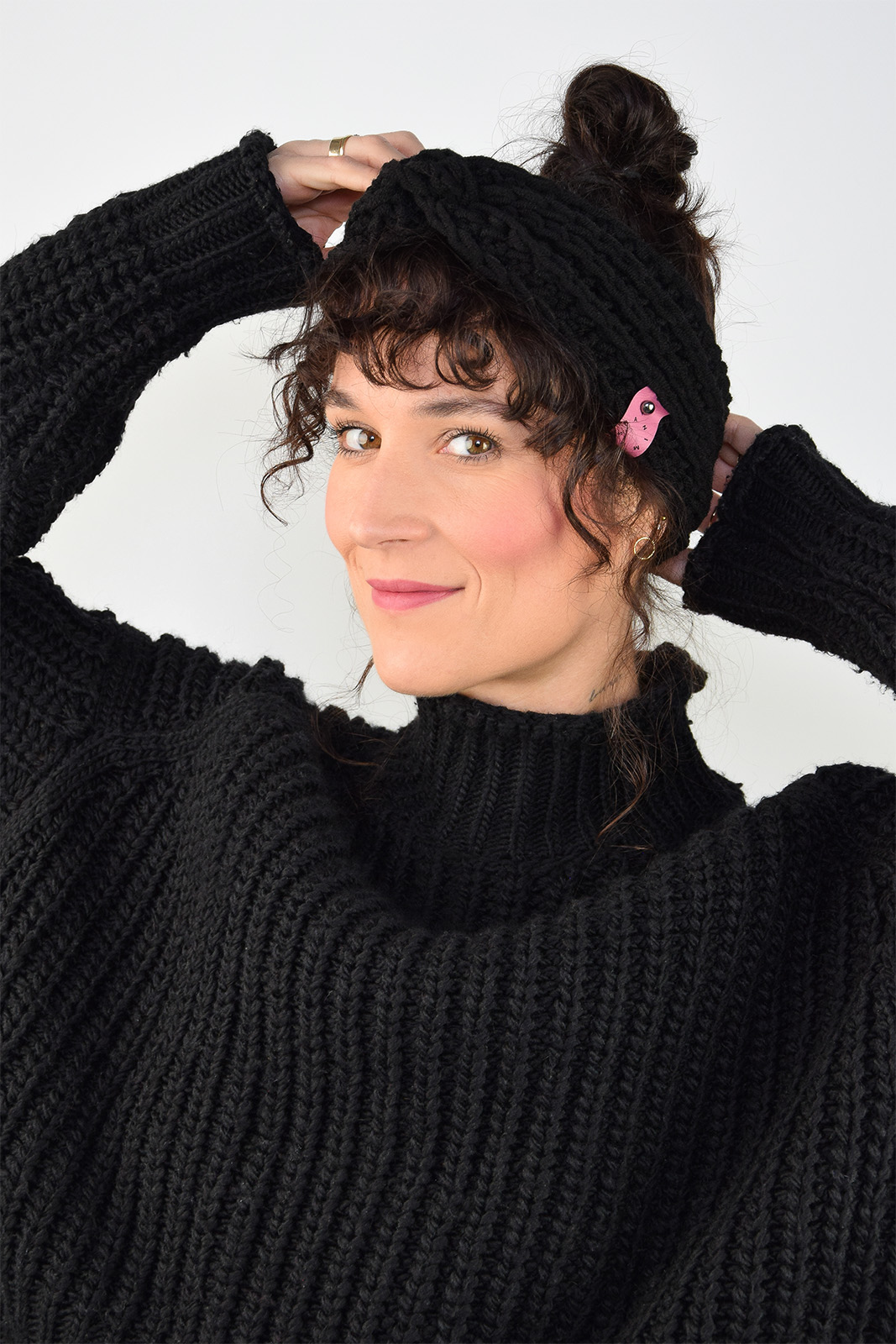 Opaska wykonana na szydełku, z pięknej, mięsistej, wełniano-akrylowej włóczki, która się nie mechaci.