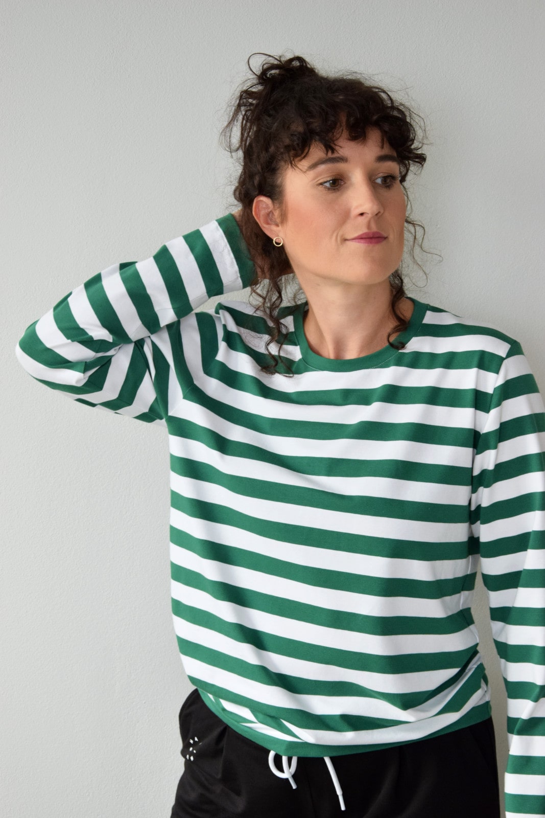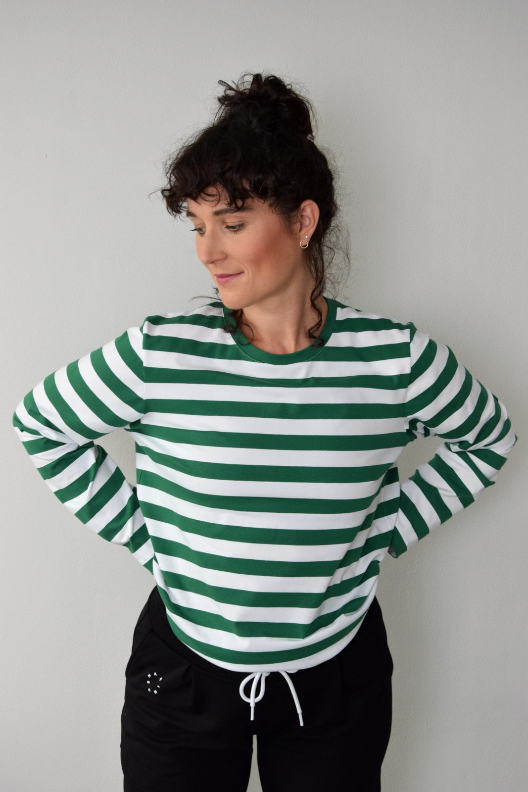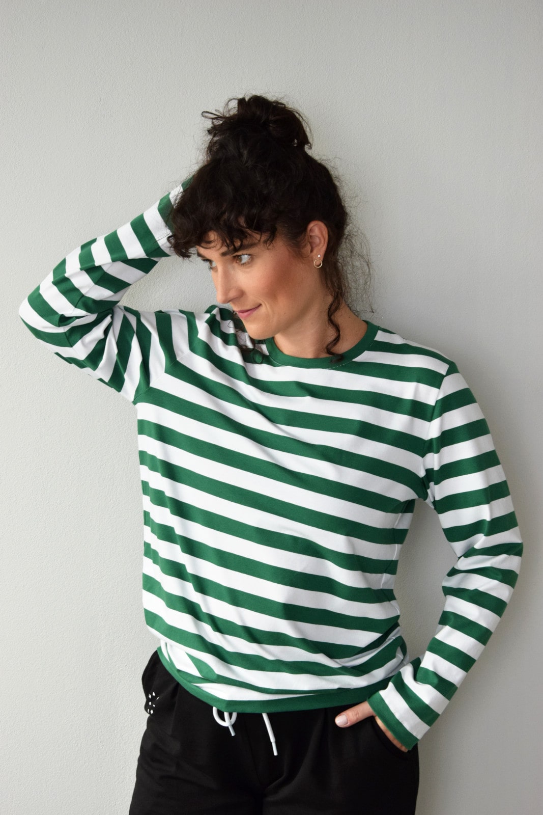 Bluzka w biało-zielone paski z długim rękawem.
