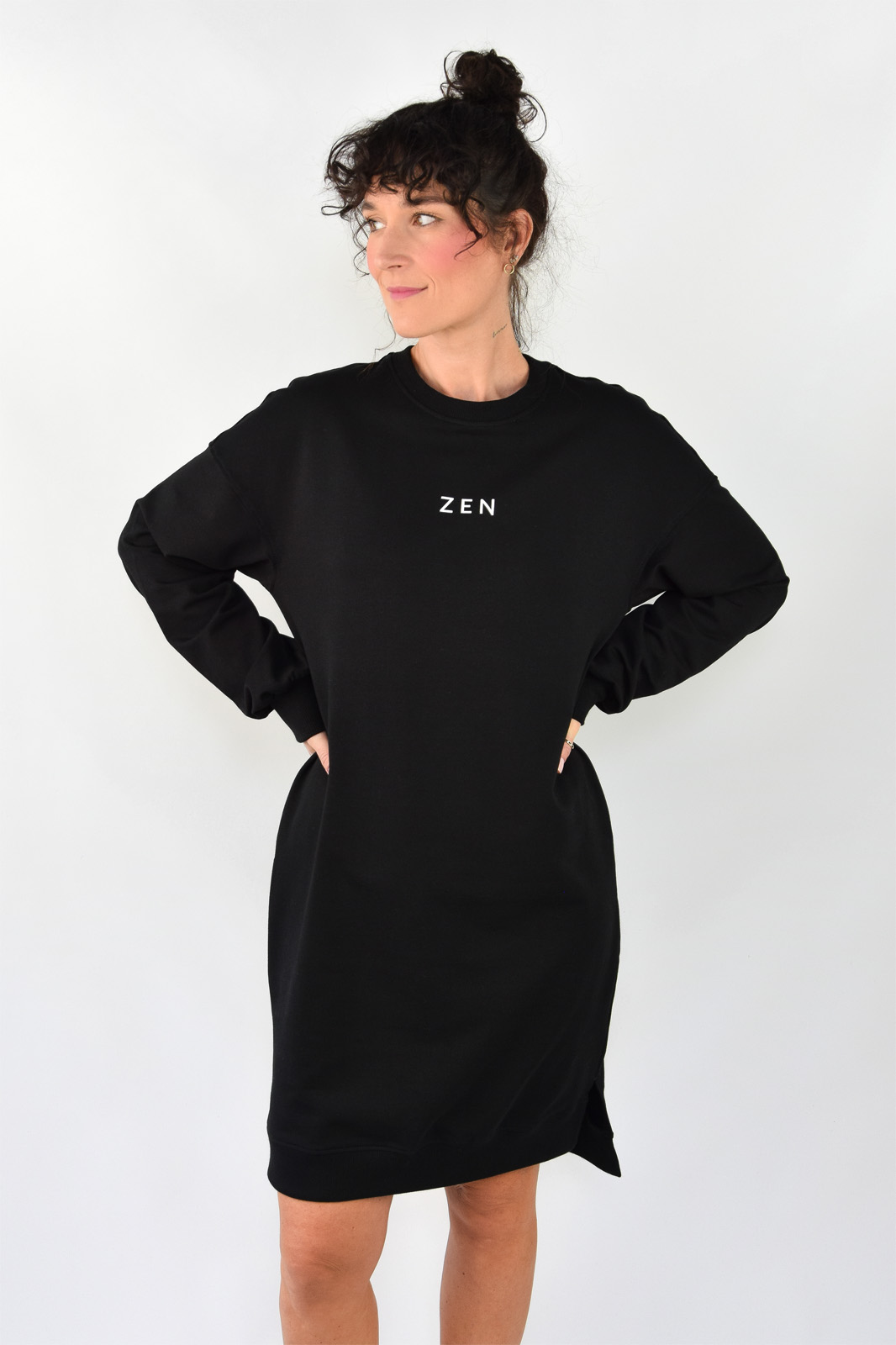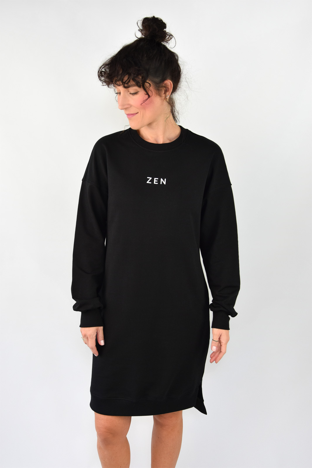 Bawełniana sukienka dresowa czarna z napisem ZEN