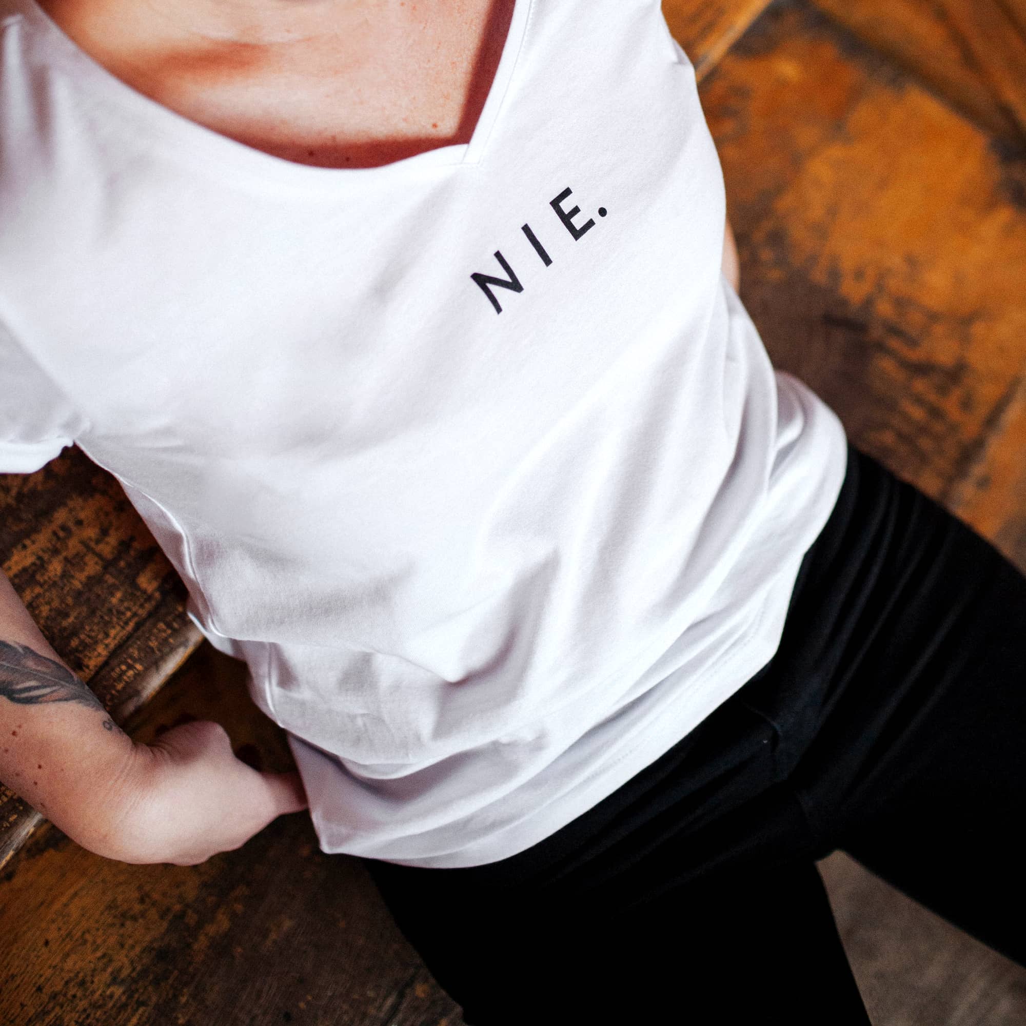 T-shirt biały z nadrukiem NIE.