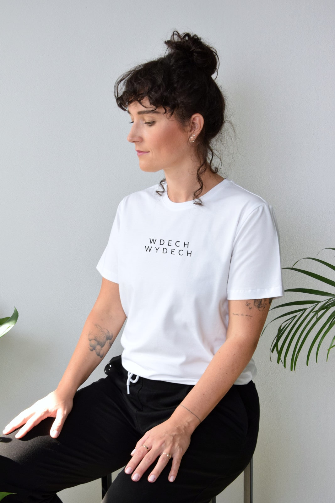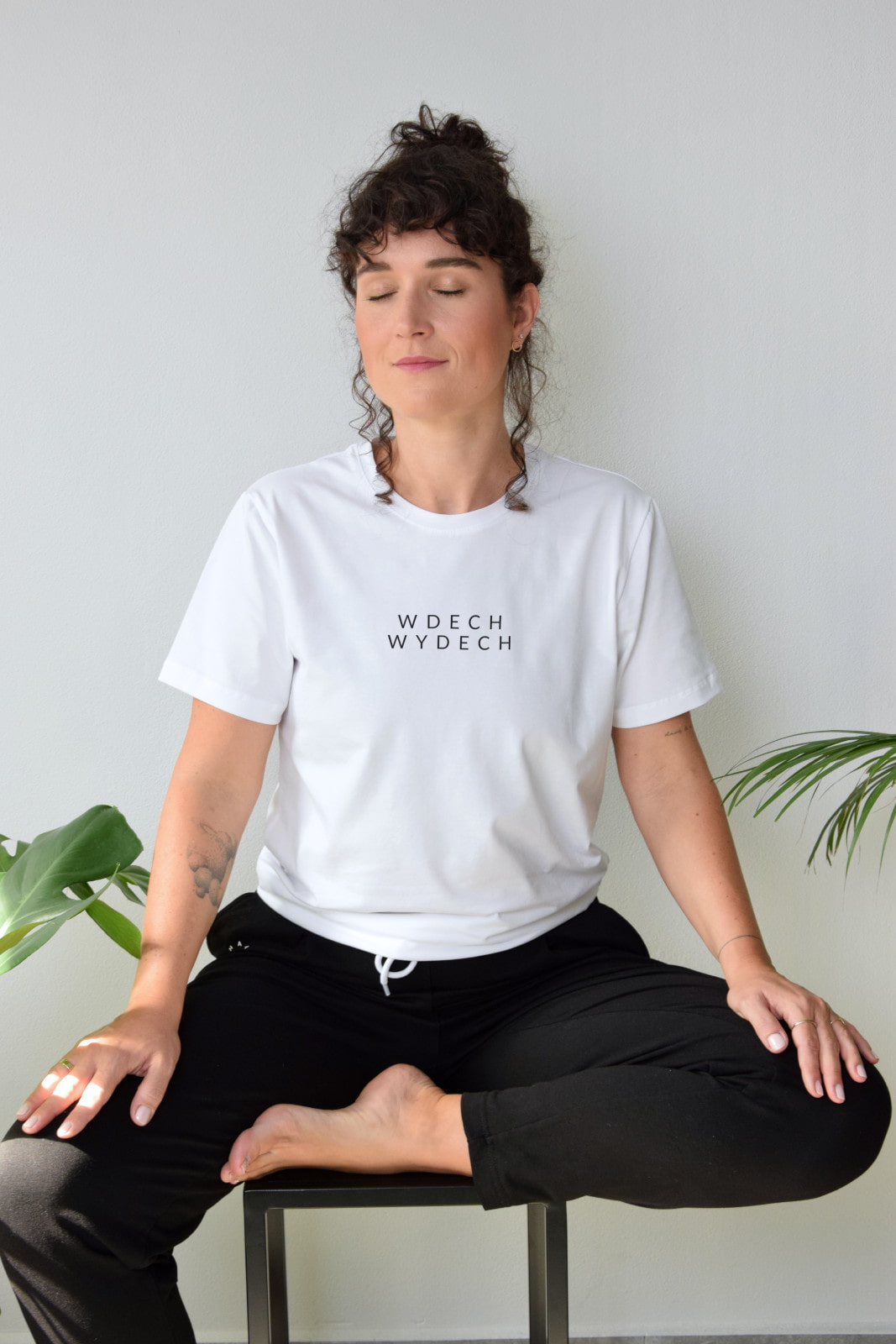 T-shirt oversize biały z czarnym napisem WDECH WYDECH