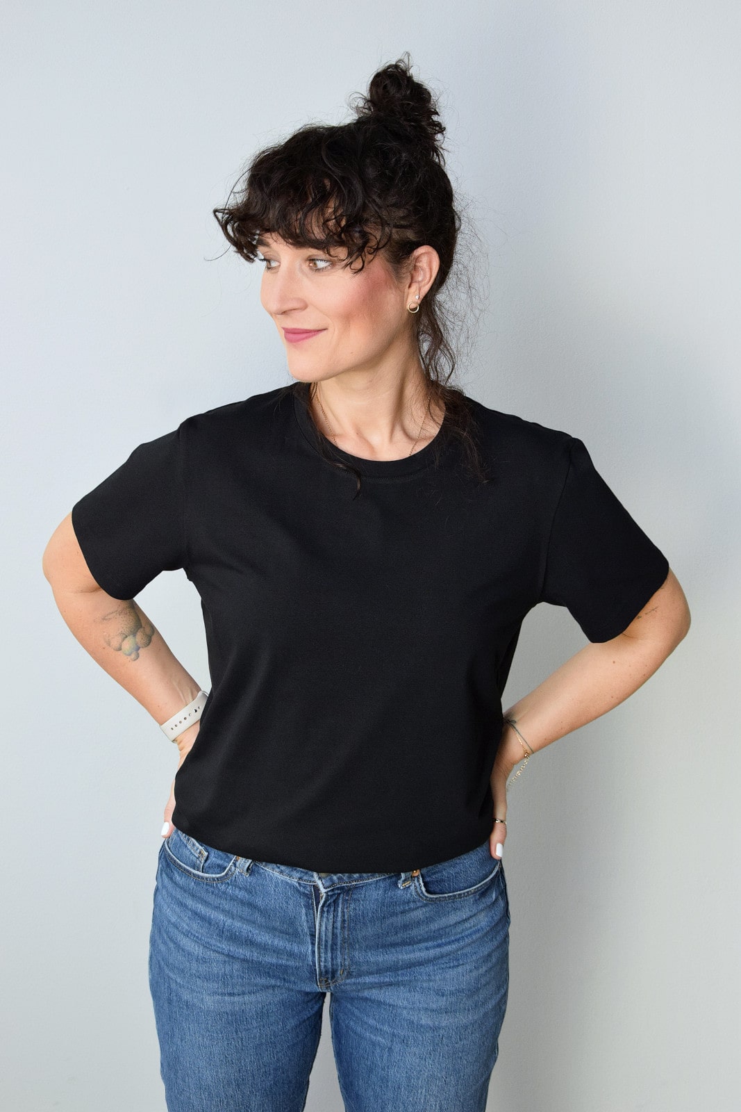 Rękawki delikatnie dłuższe, dzięki czemu można je podwinąć.