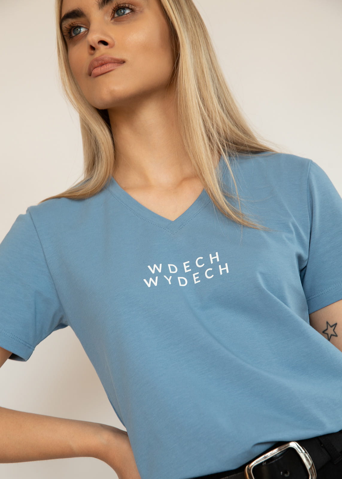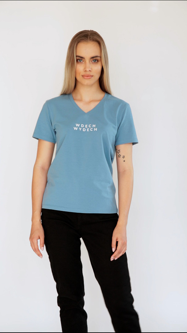 T-shirt oversize niebieski z białym napisem WDECH WYDECH