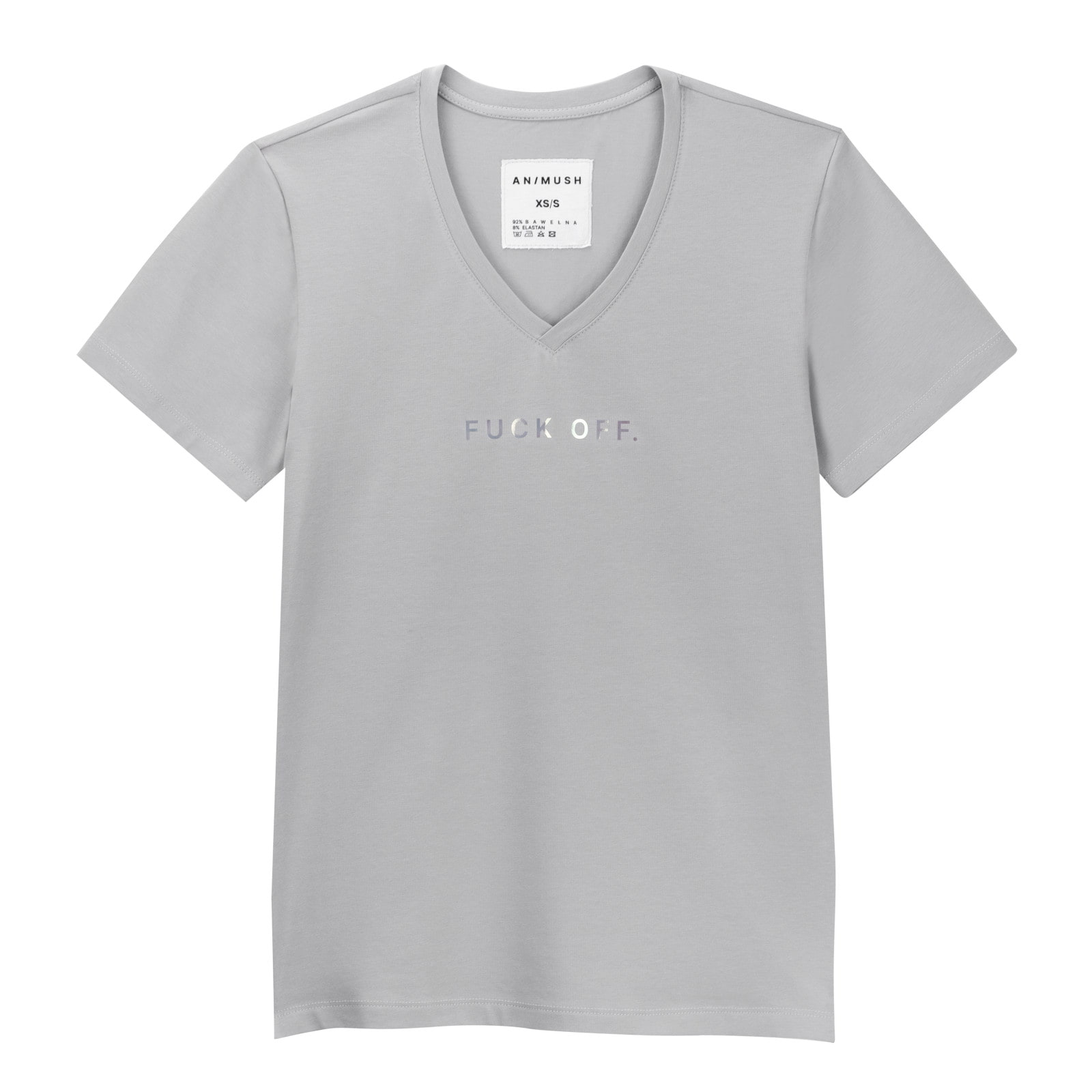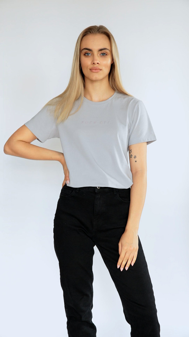 T-shirt oversize szary z tęczowym napisem FUCK OFF.