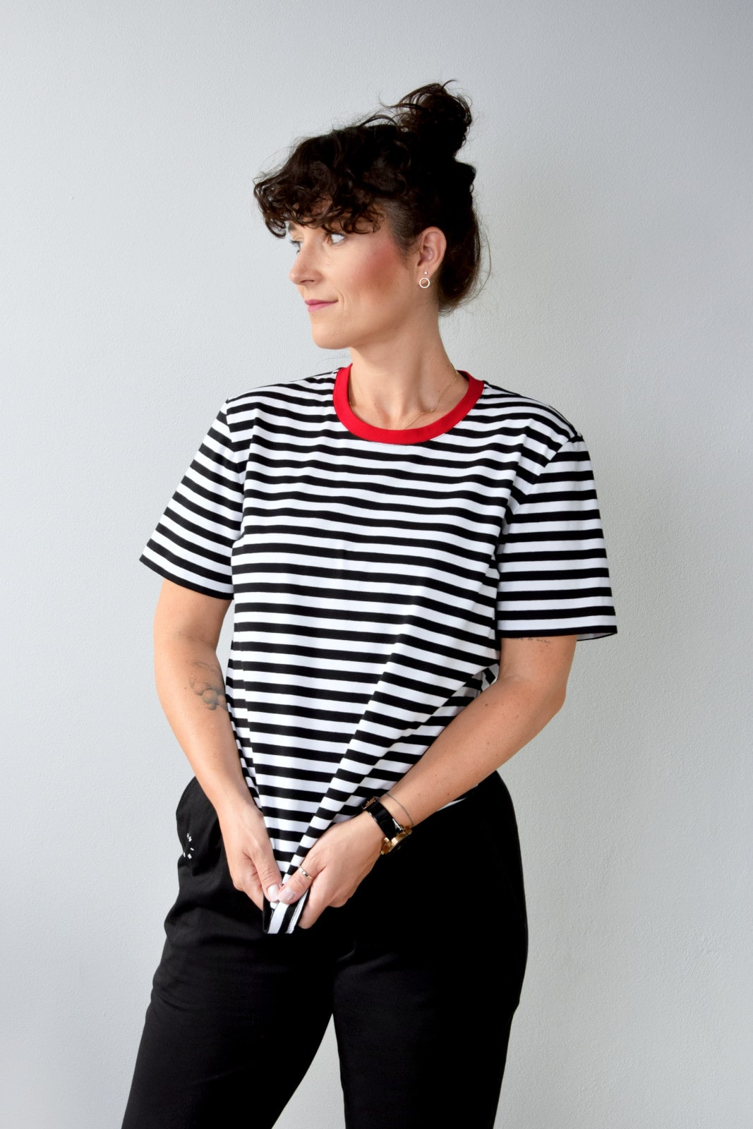 T-shirt oversize w czarne paski.