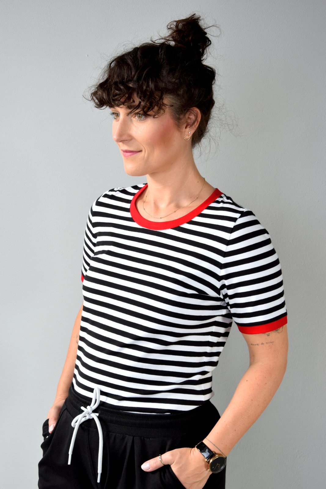 Materiał super jakości, kolorowa lamówka skradła moje serce. T-Shirt leży idealnie. Polecam